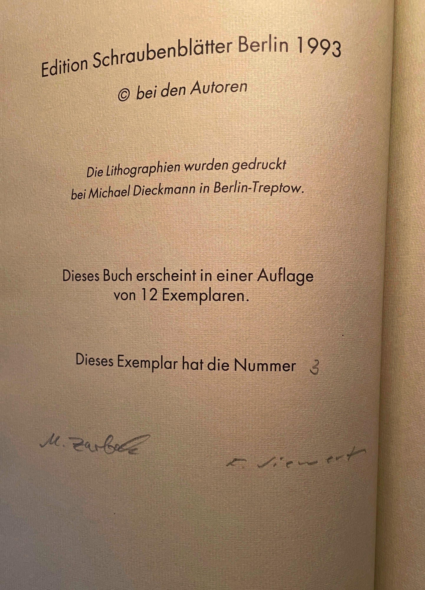 Eigendruck. Berlin: Edition Wahre Größe, 1995. [10 Bl.]