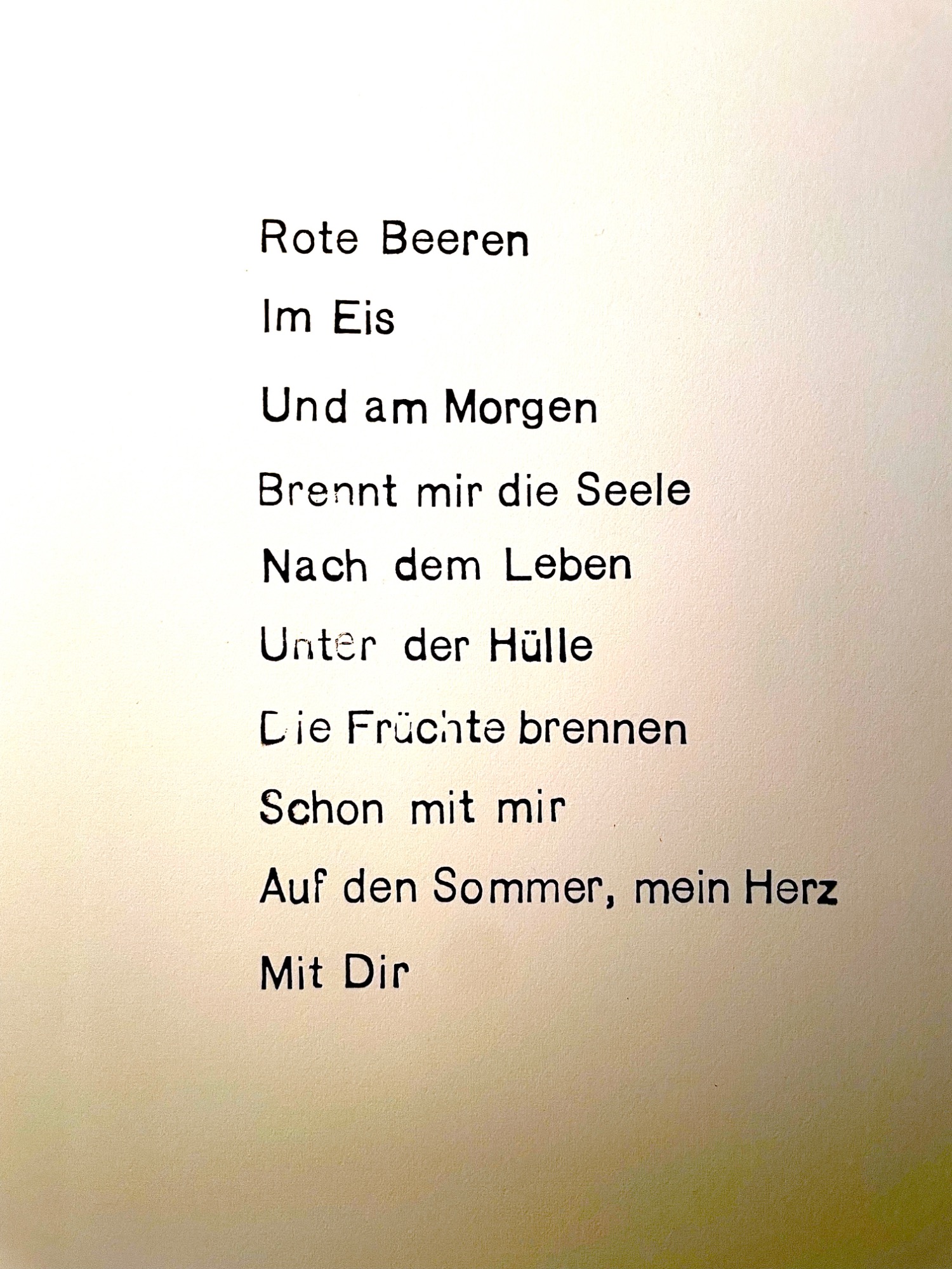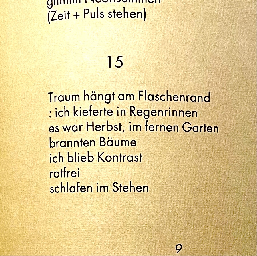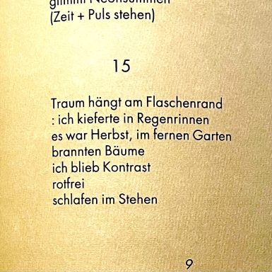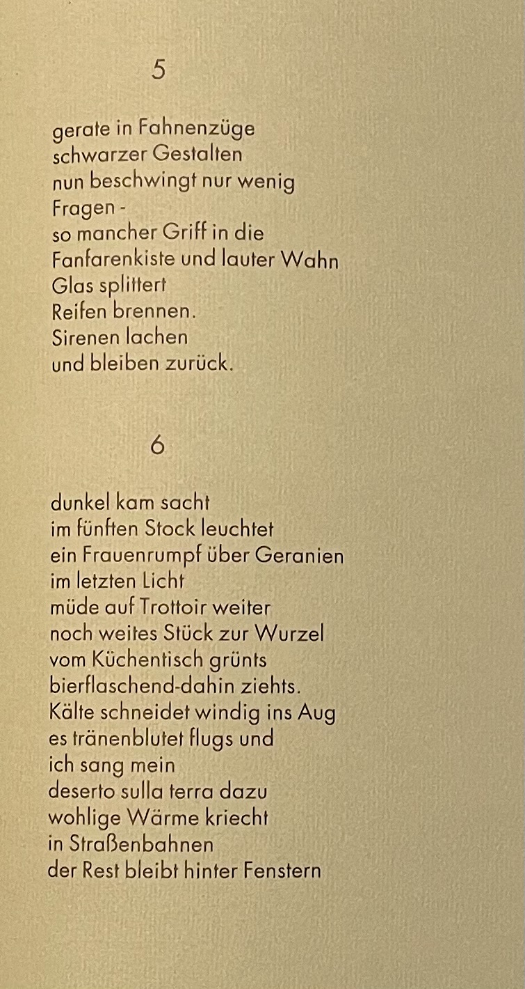 enthält: tadorna tadorna, Ein Honigmund... , sprich mir nicht von Liebe, Statue meiner Freiheit, sie war offnes blut, ich fange Glas, ANNUM PER ANNUM, Sonne denken